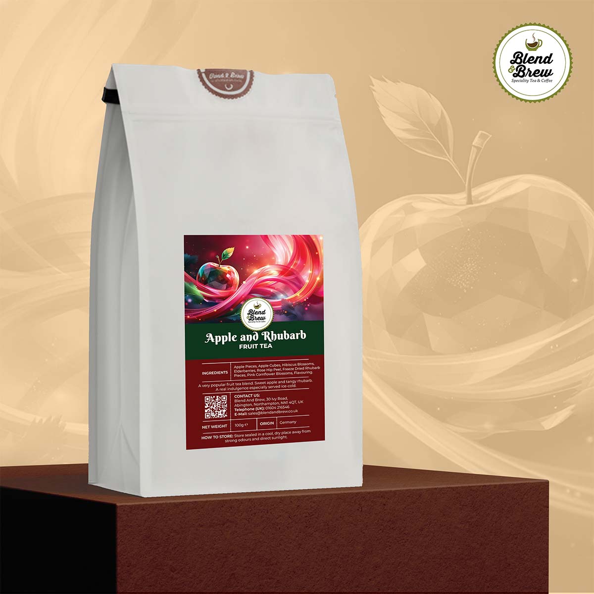 Experience the delightful interplay of sweet apple and tangy rhubarb in every cup – a tea that comforts, refreshes, and captivates with every sip.